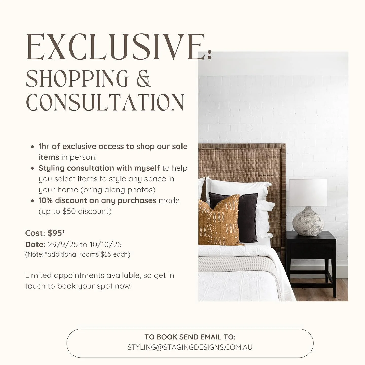 We are excited to be offering limited opportunities to secure valuable time with our Founder and Creative Director, Dimitra Oldham, to help you shop our sale and put together those finishing touches for your space!!